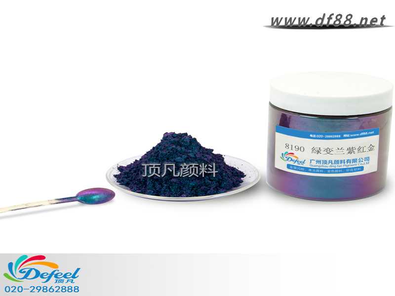 其實變色龍粉就是珠光粉的一種,頂凡變色龍顏料是一種多層片狀顔料由鋁、氟化鎂和鉻三種顔料組成,把它添加入油漆、涂料、塑料、紡織品和包裝品中之后,你從不同的角度看,它們就能變幻出不同的顔色。